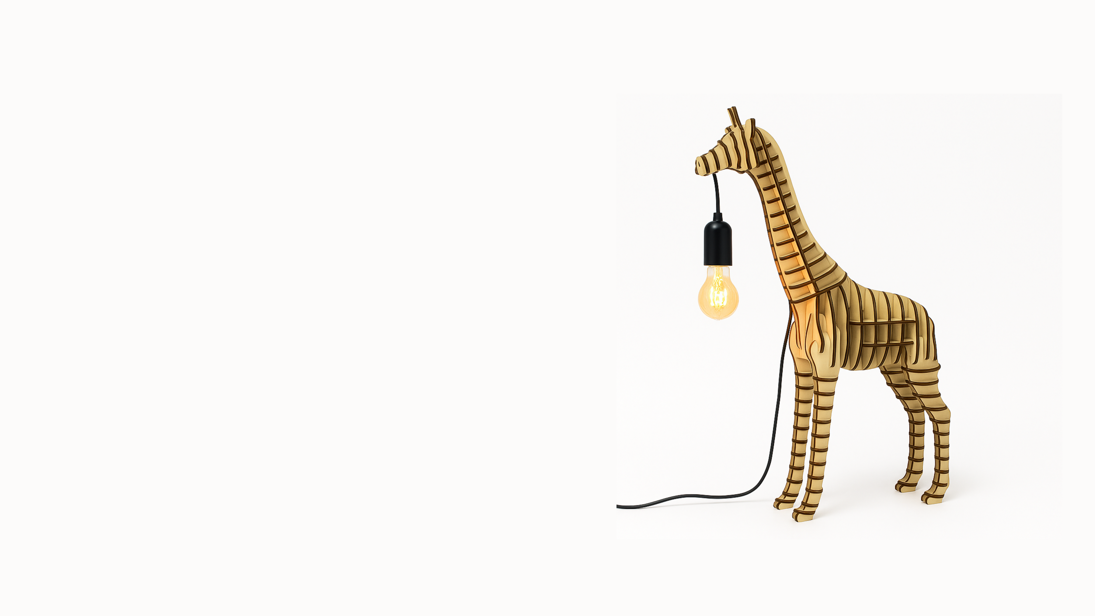 Ontdek onze eigen collectie, waaronder de Giraffe lamp, wanddecoratie en andere unieke artikelen. Deze zijn direct te bestellen. Momenteel werken we hard aan onze webshop.
